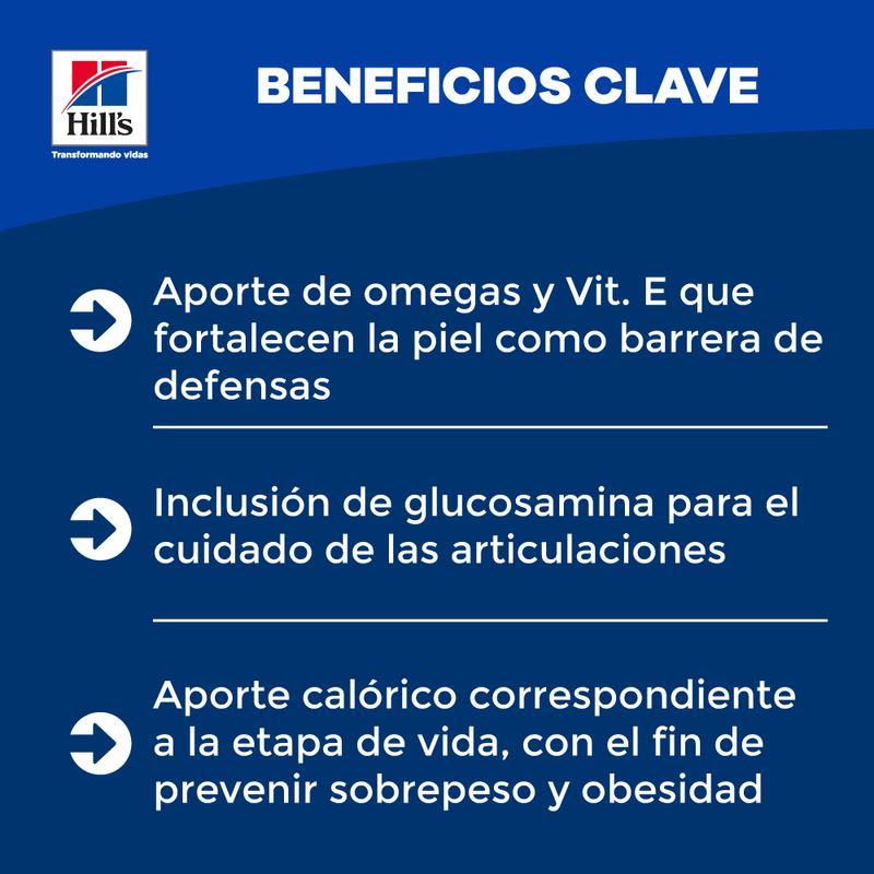 Alimento para perros adultos de razas miniaturas. Enriquecido con Omega 3 y 6, vitamina C y E como antioxidantes naturales y sin colorantes ni conservantes artificiales.