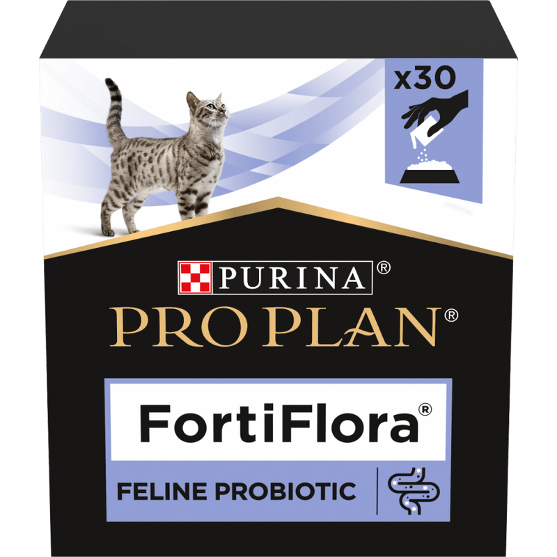 FortiFlora Feline es un complemento alimenticio probiótico para gatos y gatitos, formulado para apoyar el equilibrio de la flora intestinal y contribuir al mantenimiento de una adecuada salud digestiva. Está indicado como suplemento dietario en el manejo de procesos gastrointestinales, ayudando a mejorar la digestión y el bienestar general del felino, especialmente en situaciones de estrés, cambios de alimentación, tratamientos médicos o alteraciones digestivas. La imagen del producto es de carácter ilustrativo y referencial; la presentación, empaque, diseño, color o rotulado pueden variar según el lote o el proveedor, sin que esto afecte la calidad ni las características del producto.